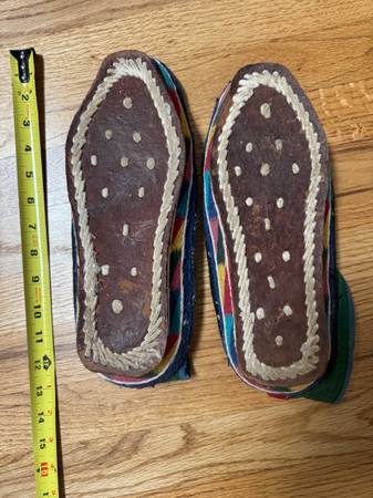 Vintage Handmade Embroidered Moccasins Bought in Nepal in 1981 Length: 12 Inches Width: 4 1/2 Inches Height: 5 1/2 Inches******from bottom of Sole to top of ankle material $20.00 CASH ONLY NO...