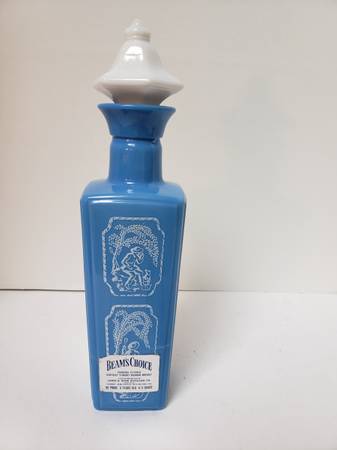 Vintage blue milk glass Jim Beam decanter (empty). *cash only *email or text inquires (Please no calls)