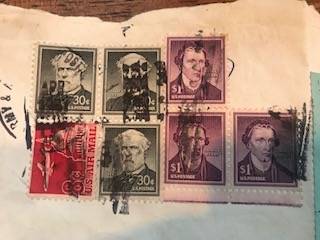 Vintage Stamps 1.) Three Robert E. Lee 30 Cent Stamps 2.) Three Patrick Henry 1 Dollar Stamps 3.) One Air Mail 8 Cent Stamps All for $10.00 CASH ONLY NO SHIPPING