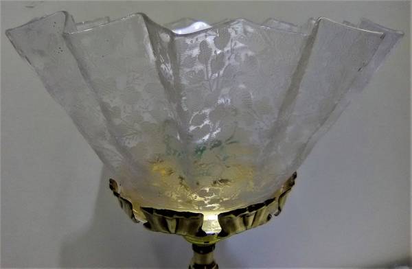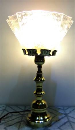 The lamp shade and retainer ring were purchased as old stock from a lamp company going out of business in 1974. The shade was made in the late 1960's as a replica of the originals from the early 1900's.