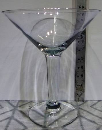 This oversize martini glass is actual glass and NOT plastic and is 10 inches tall.