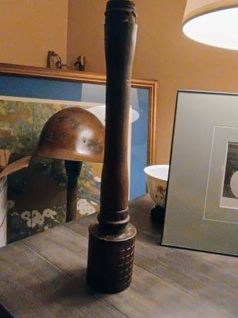 German potato masher m24 in fragmentation sleeve. Inert. $475 I'll trade for ww2 German flag, combat knives , knuckle dusters,