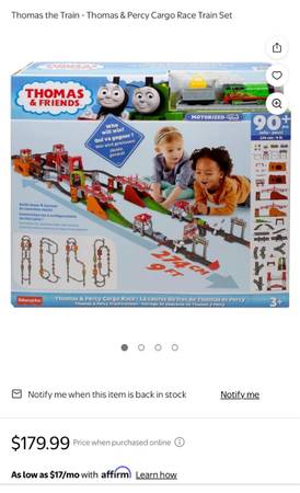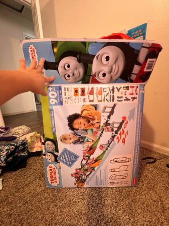 Thomas the Train - Thomas & Percy Cargo Race Train Set With Box And Instructions(No Missing Parts), my kids played couple times, like new, no need anymore, Walmart was about $200 plus tax, if you have any questions, feel free to ask me, thank you!