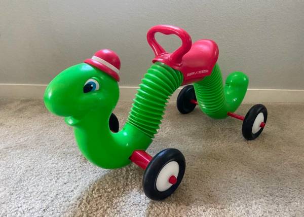 Bounce up and down to move the bike inch by inch A re-release of a 1970’s toy by radio flyer