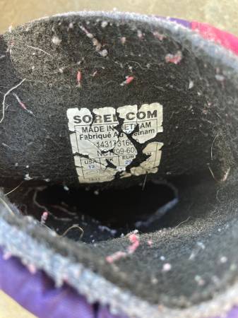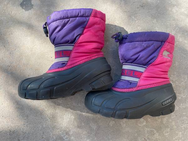 Toddler size 12 Insulated and waterproof One boot (the right) is missing the bungee cord around the top cuff Work great Comfy and warm Non-smoking home