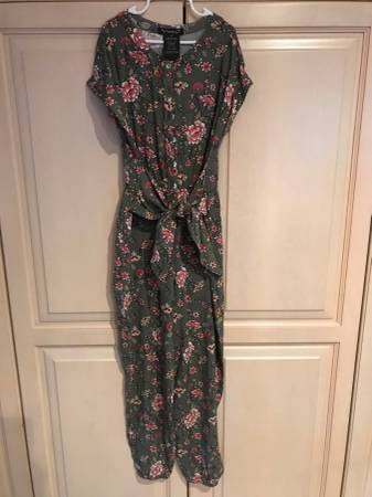 Green Floral Jumpsuit - Big Girls size M, $10.