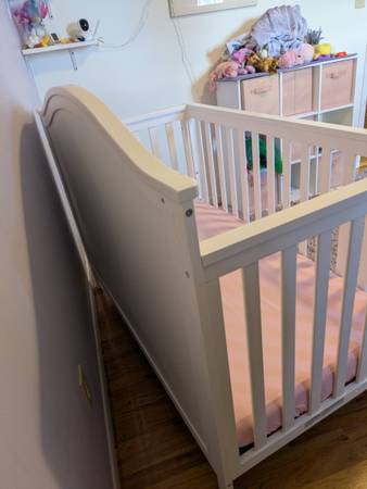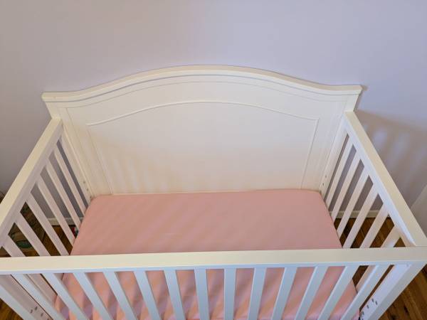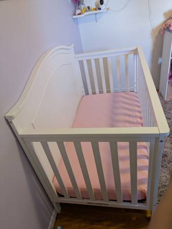 Selling a well made, wood baby crib along with the mattress. The crib is in great condition with a few dings but nothing major. Kiddo grew up, so hoping it will go to a good home. $125 OBO.