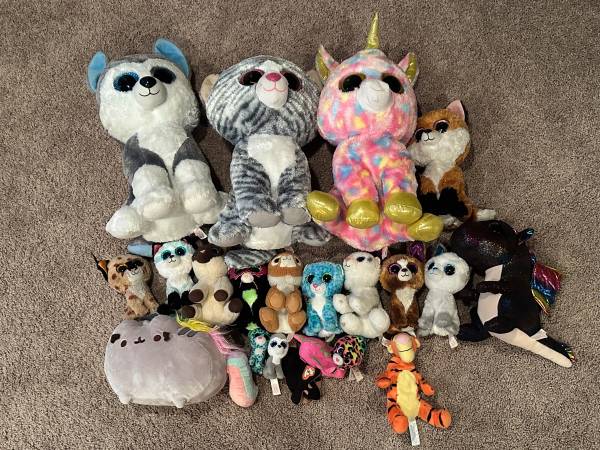 19 Ty Beanie Babies of assorted sizes. All in good to excellent condition. The 3 large ones are all excellent condition. Only $15 for all of them!