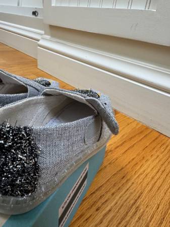 Brand new, never used. Tried to get shoes on but had outgrown them by that time. Comes with box. Regular price was $38.