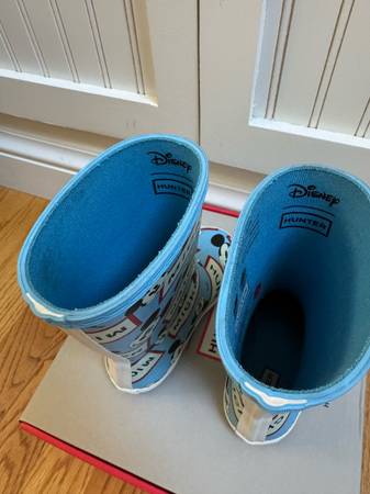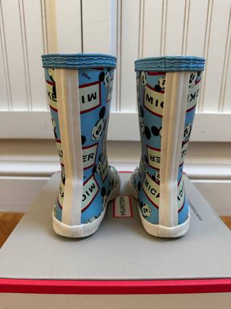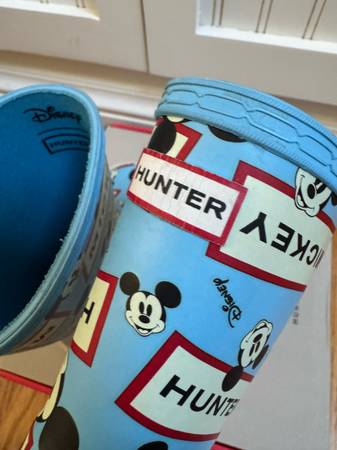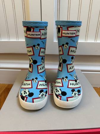 Used, in GOOD condition. Very good quality rain boots from Hunter's Disney Collection featuring Mickey Mouse. They are a size 7 (UK)/8 (US). Comes with original box. Original retail price was $70.