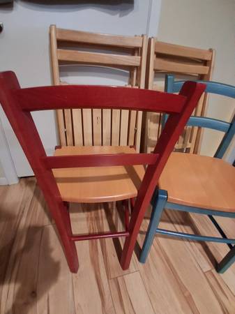 (4) 2 child's wooden chairs set of 2 $30. If interested please text 303-596-325three or email only. Littleton area Kipling and Belleview. Because of scammers cash only 💸 ty