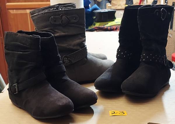 Size 1 Black and Brown, Size 2-3 Blacks and Gray Boots $10 Each