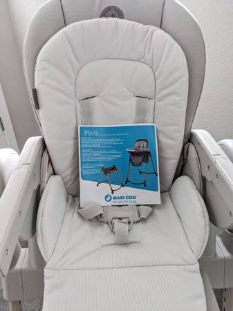 MESSES CLEAN UP QUICKLY Minla folding high chair is a parent’s dream to clean. The liquid-repellant fabric is made for spills, and you can toss the zip-off seat pad in the washing machine. Pop the removable snack tray in the dishwasher and wipe down the rest.