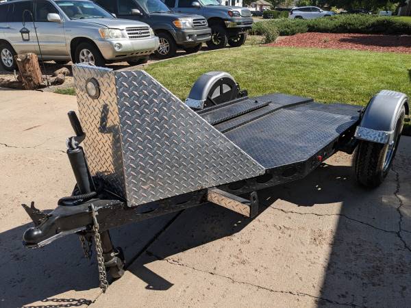 Hello, I am offering my H&H Motorcycle Trailer for hourly, daily, and weekly rental. It is a newer model that features a low loading deck, low profile loading ramp, diamond plate steel rock and bug shield, oval tie down anchor points all around, and it can even fold and stand upright for storage. I will rent it out for $8 per hour, $40 per day, or $120 per week. Pick up and drop off typically available between 6am and 8pm near 92nd and Wadsworth in Westminster, just north of Arvada and a little South of Broomfield. Signed rental agreement and copy of valid Colorado Driver's license required for all rentals, thanks!