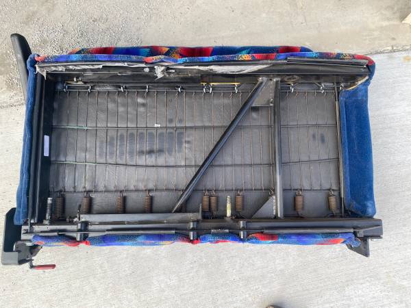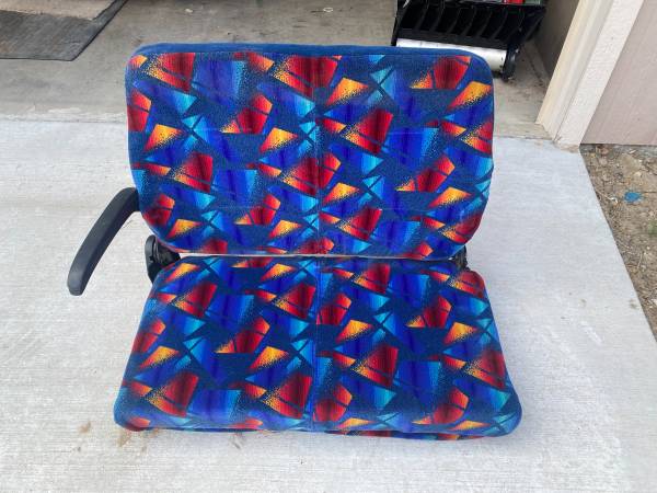 1 - seat great for boat, Jeep, go-cart, slightly recline, bolt pattern 8" on center and 12" on center. 1 - Bench seat, 35" long, folds down.