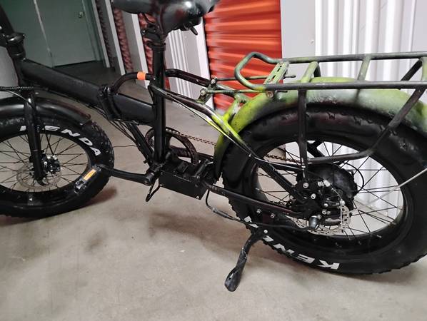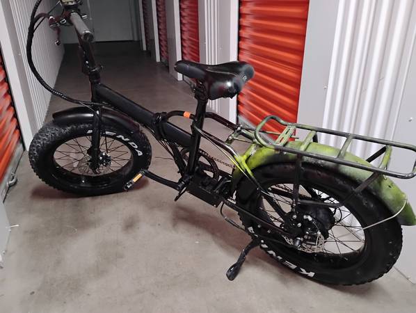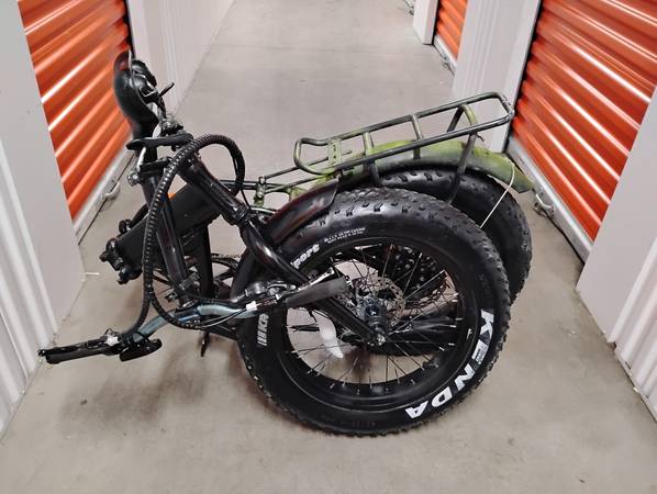 Needs battery the one I got is not for the bike but is a Bluetooth smart battery USB connection charge like a car battery I don't have a charger e bike is a tank peddle assist or just peddle folds in half and bars down to make for easy space saving storage fat 20*40 mud/snow tires in great shape it's a great deal for $300 for bike and battery will trade for gold weapons or cash.