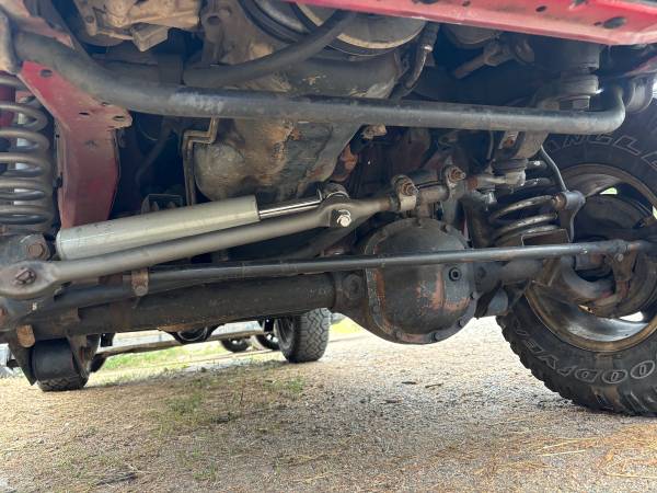 -Comes with: (4) oem fender flares, Rugged ridge HD steering kit with a couple new tie rod ends, upgraded front axle tube seals, oem inner frame steering box brace, fuel pump, distributor, other random sensors, spare lug nuts, complete spare AW4 transmission, grease gun, Solar panel battery trickler for overlanding