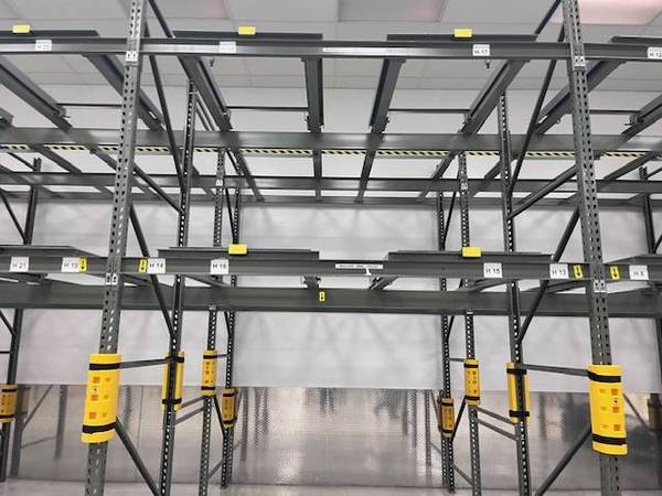 2 Large Sections of Quality Push Back Warehouse Racking Shelving Section 1 is 12' tall with 8 Uprights and 8 additional beams with 24 double deep push back system. All in excellent condition Section...