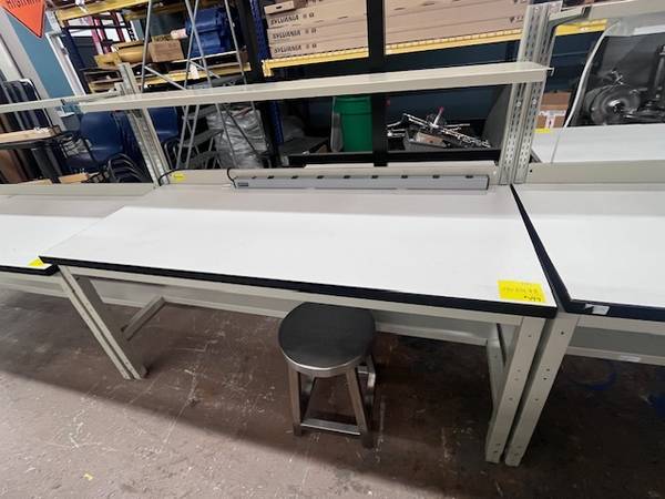 Adjustable Height Workbench with Overhead Shelf Solid and Sturdy! Measures: 72 x 30 x 35 We have multiple benches available. This one is marked (B). $499
