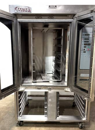 This Baxter rotating Rack Oven is in Very good condition both functionally and cosmetically. This Rack Oven was acquired from a local private school that recently closed. It was used sparingly and always maintained under a service agreement. It has been fully cleaned serviced and tested and functions perfectly without any issues, whatsoever. As with all pre-owned equipment there may be some minor cosmetic imperfections such as surface scratches and minor blemishes. If any exist, they are minor in nature and in no way affect the performance.