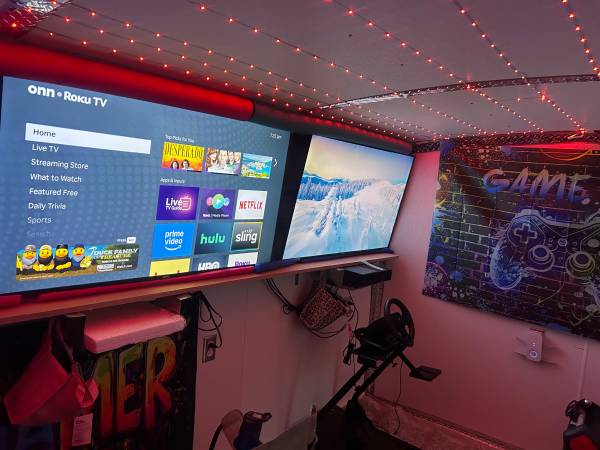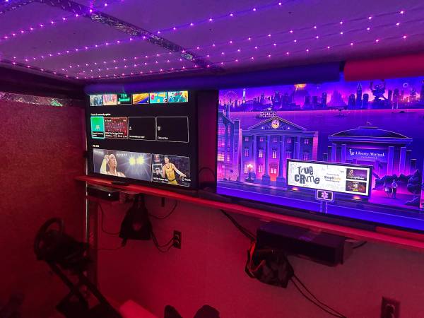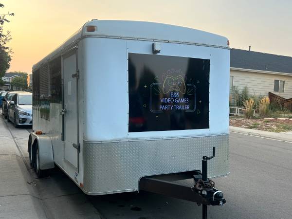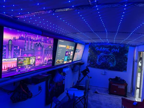 Video games party trailer equipped with 5 HD 50” inch TV’s and XBOX video games , two raising simulator,LED lighting and comfortable inside environment ready to start your own entertainment business in birthday parties, private and public events