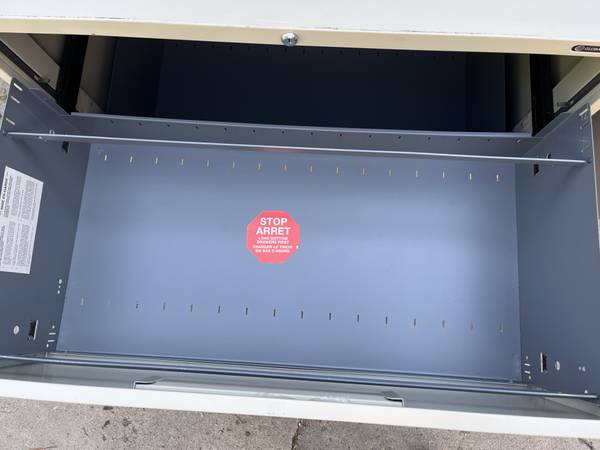 One Global 2 drawer lateral file cabinet, putty color, 36" W x 18" depth, has lock and key $60 call three032029658