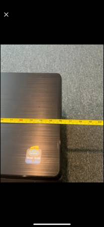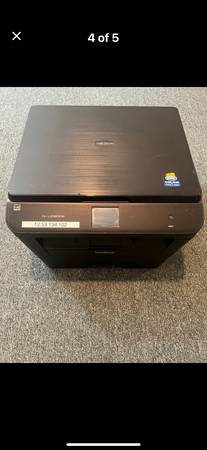 Great desk sized printer. Wi-fi enabled. Cartridge is almost full. Only black color printing. Width (side to side) 16" Depth (front to back) 15" Height 10"