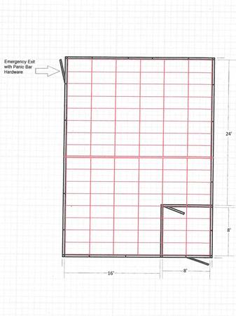 Room #1 Dimension (cleanroom): 24' x 29.3' x 8' = 703.2 sq ft