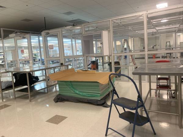 This cleanroom is used, but in good condition. Hepas filters were regularly replaced. We're not sure how much life is remaining on the existing ones, but they've been wrapped. The room has been completely disassembled, and it's currently in storage. The class 10,000 spec can be lowered by adding additional hepa filters.