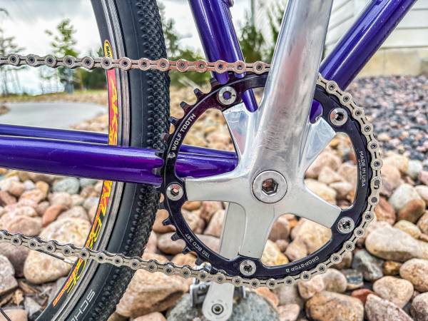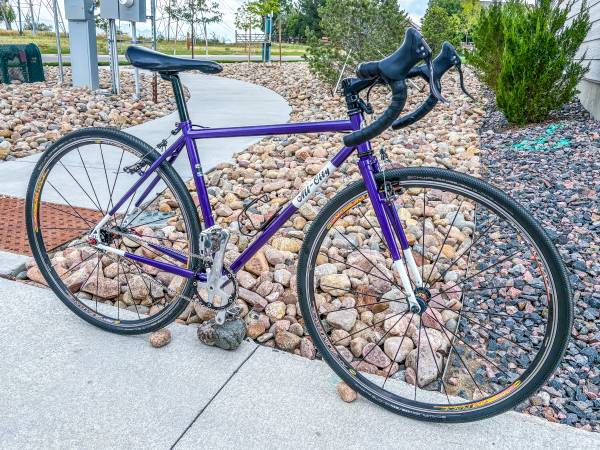Cross is coming! Grab this classic steel cyclocross bike from the late, great All-City (RIP). Size is 46cm, the smallest they made. 5’-5’6”. NEW: Schwalbe G-One tires, KMC chain, and Wolf Tooth 38T...