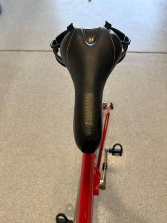 Time-Trial Bike, also known as Triathlon Bike, with disk wheel and carbon-fiber fork and handle-bar. This Canadian-made "Guru" bike is a custom racing bicycle, which attained Olympic gold medal in Sydney 2000. It is in excellent condition and runs very smoothly and fast.