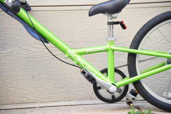 "The 7-speed Piccolo® trailercycle keeps your child close, while introducing them to the joy and freedom of biking. With an adjustable seat post, this trailercycle grows alongside your family and fits riders between the ages of 4 and 10. Whether your kiddo pedals or coasts, you can bike farther together without worrying about little legs getting tired."