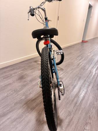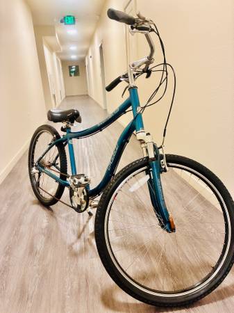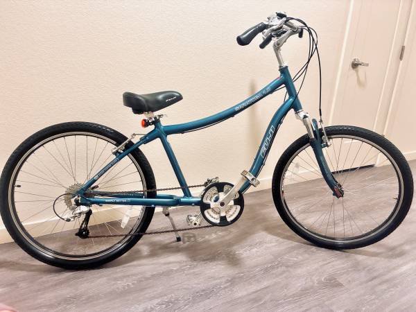 Fuji Saratoga cruiser: •Dark blue • 26” Weinmann double-wall rims • Fuji Comfort tires • 42cm top to bottom Aluminium frame • 27-speed drivetrain
