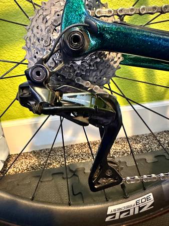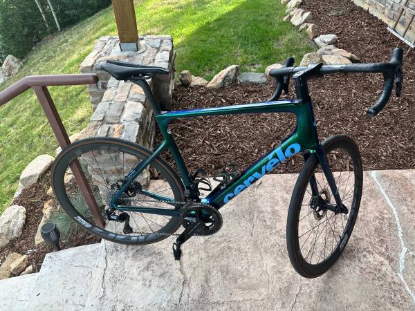 Great for long distance or high speed rides. Shimano Dura-Ace drivetrain and brakes. Zipp Firecrest 303 wheels. Excellent condition!
