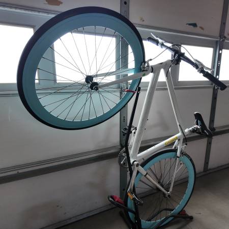 Size M (5'6" to 5'11") Comes with * vertical stand (unknown brand) * Allen trunk rack * Indoor Trainer