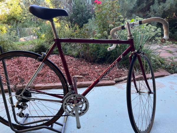 Beautiful lugged Giordana bicycle from the late 1980's made in Italy. Frame size is 50 cm from center of bottom bracket to center of top tube with semi-horizontal drop out (could make a beautiful and unique fixie). Currently has a 3 x 7 Shimano 600 drivetrain and brakes (rear derailleur is Deore XT.) Down tube shifting. Rear derailleur is indexed, front is friction shifting. Amazing detail throughout. MATRIX rims with Shimano hubs. Shown with no pedal or bottle cages in photos, but can discuss various pedal options (flats, SPD) and bottle cages.