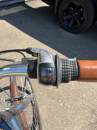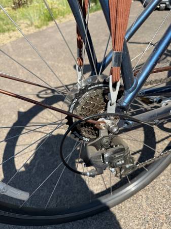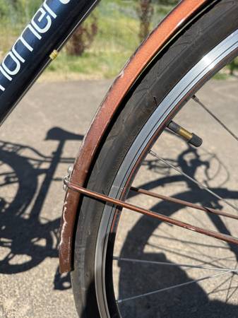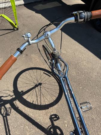 We're selling our well-maintained Momentum Street urban commuter bike. With classic looks and a user-friendly cup holder design, it makes riding bikes easy and fun. Other highlights include a cup holder, rear rack with built-in straps, rear basket, U-Lock Fit, and 7-speeds in a lovely metallic blue finish. Large frame sits is perfect for riders between 5'9" to 6'3" in height with a 30.3" standover height.