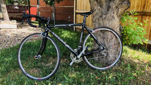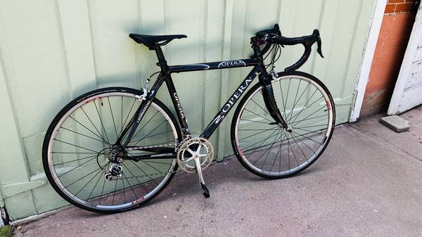Classic Opera 52 cm top tube, carbon built by Pinarello. DT-Swiss wheel set, 10-sp Campy Chorus grupo, 53/39 - 25/13 gear ratio. 42-cm compact carbon bars, carbon seat post. Pedals not included. I am a bike mechanic and have kept this bike well maintained. Bike will fit someone between 5"4 - 5"7.