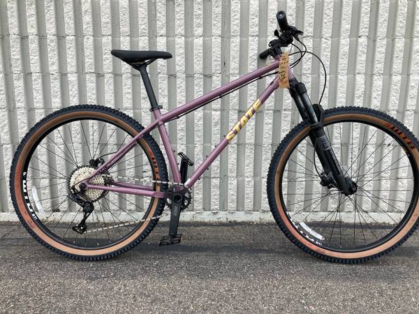 State 4130 Trail Hardtail - was $1499.99 now bottom line $1000. Fantastic steel frame with a RockShox Psylo fork, this bike is an excellent single-track or trail mountain bike. Big tire clearance with plenty of rack and accessory mounting points and Tektro hydraulic disc brakes for tremendous stopping power. The steel frame gives a great ride feel with a 11 speed drivetrain this bike is perfect for crushing climbs and sending trails!