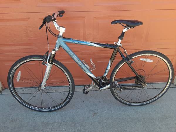 It's hard to decide which is more appealing: the Trek 7700's smooth, effortless speed, or its regal comfort. A light, lively frame, aerodynamic Bontrager Select wheels and a host of lightweight components promise a lifetime of fun pedaling. And, the smooth rolling Schwalbe Road Cruiser tires, Rock Shox Metro suspension fork, suspension seatpost, adjustable stem, rise bar and upright frame geometry provide a plush, ergonomic ride that makes the miles fly by. The 7700 even includes an easy-pedaling 21-speed Shimano drivetrain for effortless climbing.