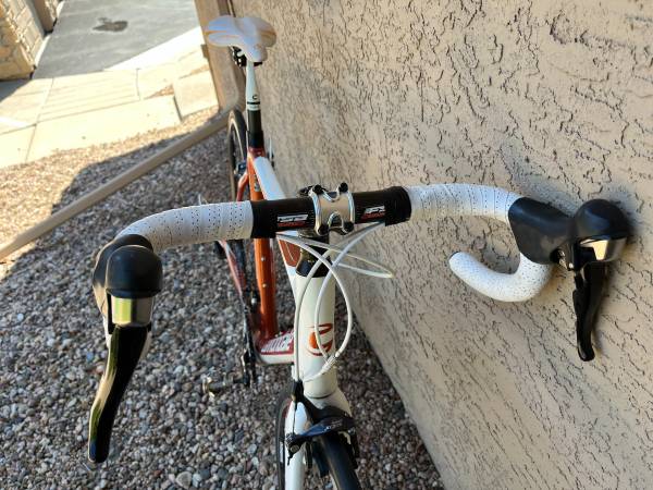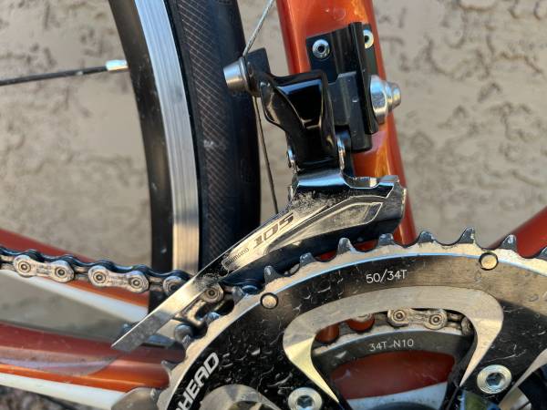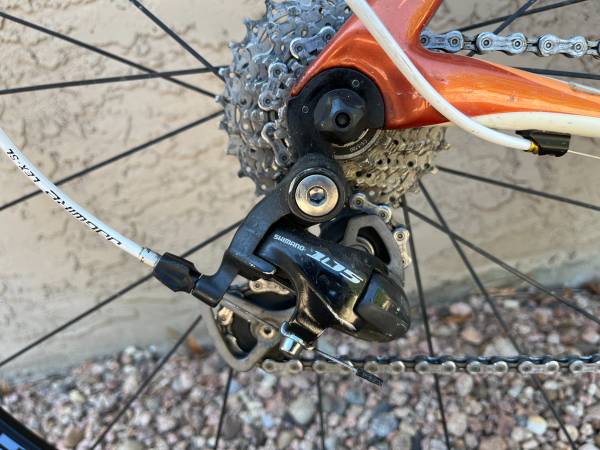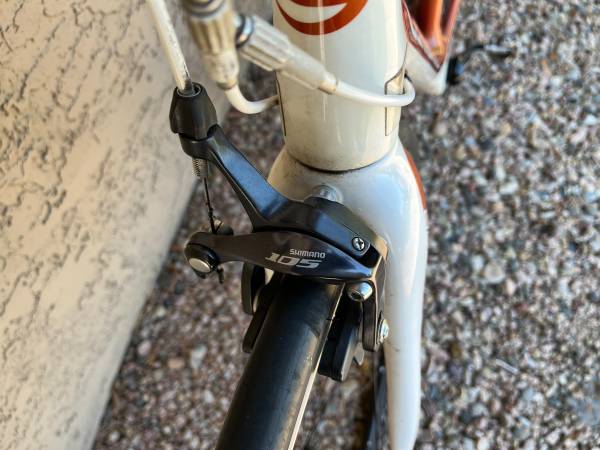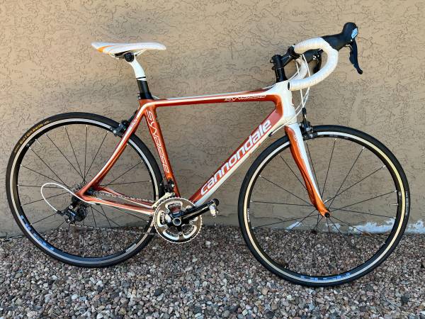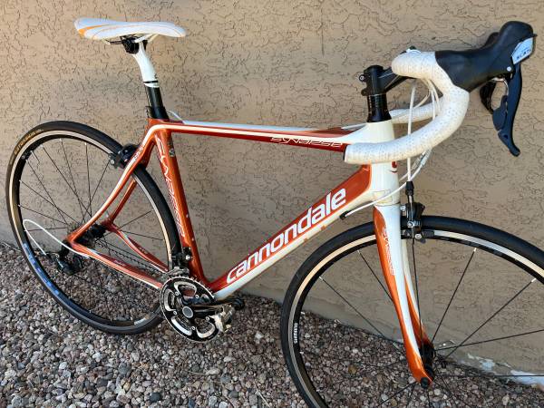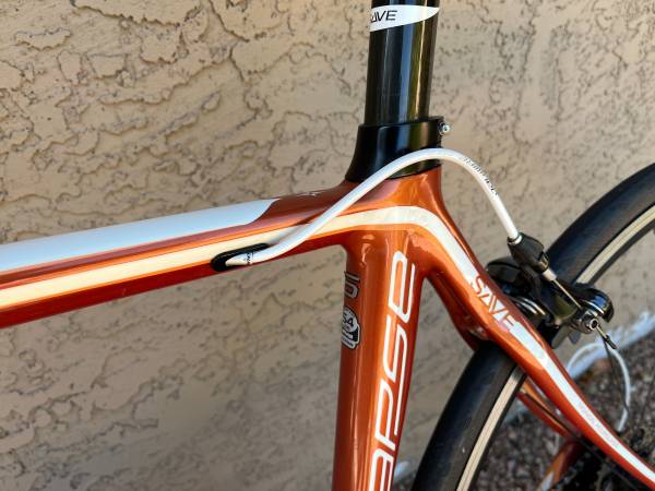 It is a full carbon road bike. The bike is in perfect condition, recently tuned up by a bike shop, and ready to ride. Everything works smoothly. The size is 54cm. The year is 2014.