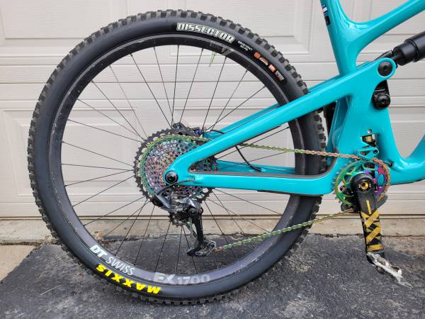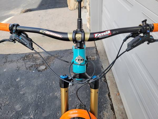SUPER FUN custom $12k build based off a factory XX1 Turq T3 from Yeti. Has 3 seasons on it (have not ridden it this season at all). Standard wear and tear. Tires only have a few rides on them. Currently tubeless with Cush Core. Some frame scratches have been filled in with official Yeti touch-up paint (included if you want it). Wheels have some minor scratches/dents in them but are straight.