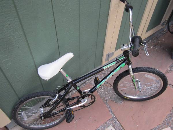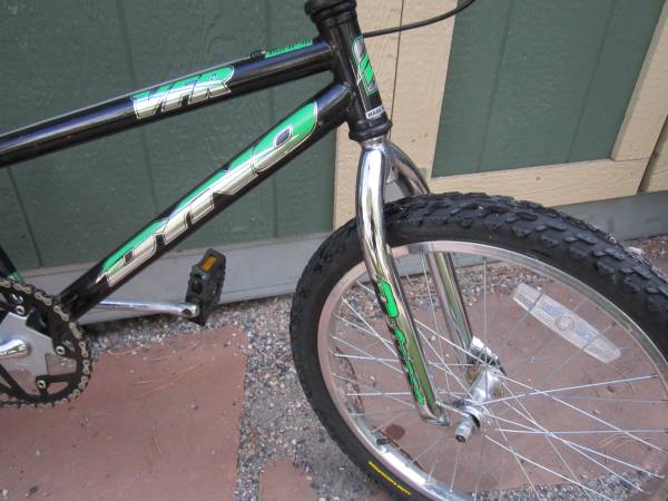 90's vintage Dyno VFR 20" BMX bike. All original except the seat (as far as I can tell). Original GT "piston" stem, Dyno Bars, GT seat post clamp, "mohawk" hubs, MAC 4019 rims, original GT chainring, Tektro brakes, etc.