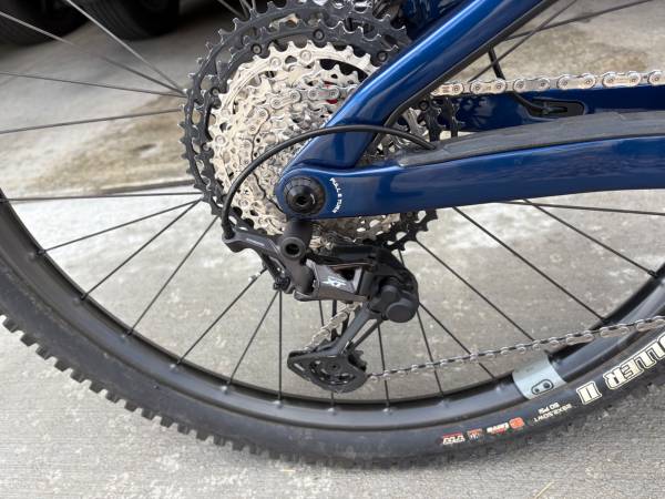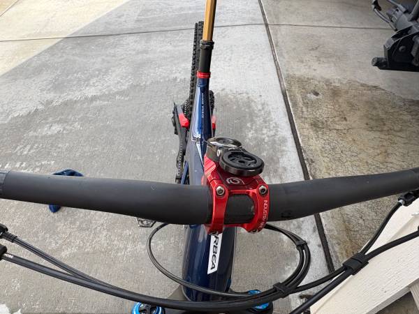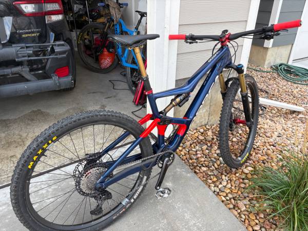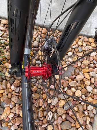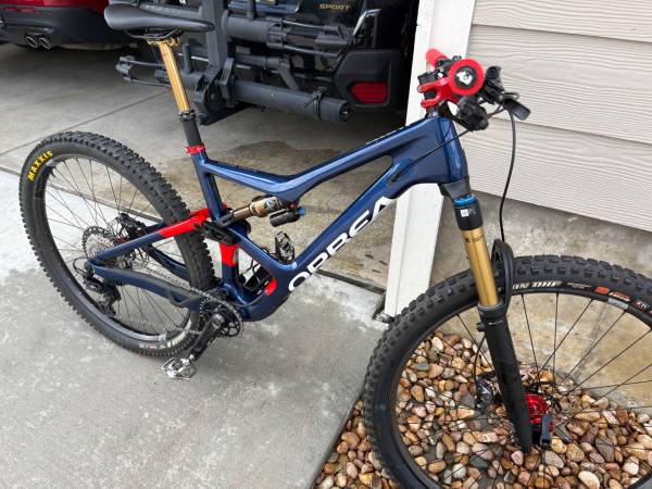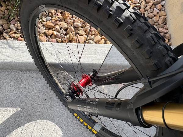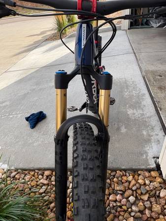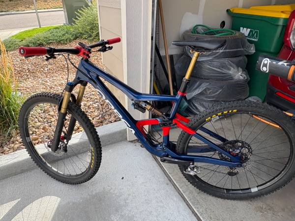 Carbon Frame and Carbon Wheels- Absolutely in Mint Condition- not one blemish! It's a full suspension mtb. bike with 100 miles ridden on it with a Fox 36 Kasmir Front Fork with 160m of travel, a Fox Float Kasmir Extra Volume Rear Shock with a 150m of travel. Crank Brothers Synthesis Enduro Carbon Wheels Front and Rear, Industry 9 Custom Stem, Brand New never used Hope Pro 5 Enduro Hubs on both wheels, Shimano XT Cranks, Shimano XT Drive Train, Shimano XT Front and Rear Hydraulic Disk Brakes, Fox Transfer Dropper Post with a 150m travel, Fizi:k Saddle, Maxxis Minion front tire, Maxxis High Roller rear tire, ESI Grips, one water bottle cage. Get it while it's still available because this is a brand new bike with lots of upgrades!