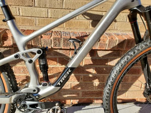For sale is a model year 2025, size large, Trek Top Fuel 9.9 XO AXS t-type, Gen 4. It's a 130mm travel bike that I purchased last spring and have put maybe 100 miles on it. The bike has all the original stock parts from the factory. It includes the newest SRAM electronic shifting XO transmission with Trek Line Pro carbon wheels, Pike Ultimate fork and Deluxe Ultimate rear shock, as well a Reverb AXS dropper post. The frame has downtube storage with both bit bags included. This is the top of the line SRAM build offered by Trek for this bike. It's in great condition, no major scratches to the frame or the wheels. The tires are set up tubeless with plenty of life left and the brakes are good to go without a bleed required. Cash or Venmo only, pedals not included. No trades.