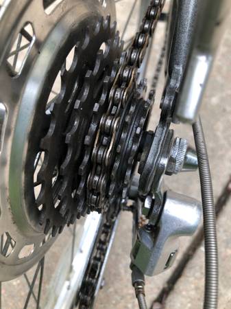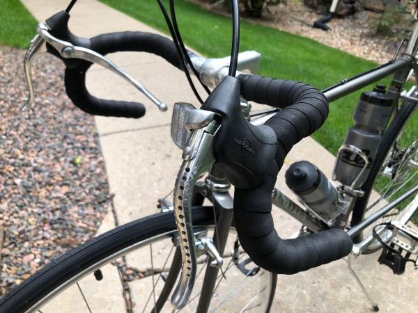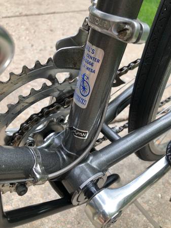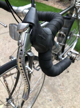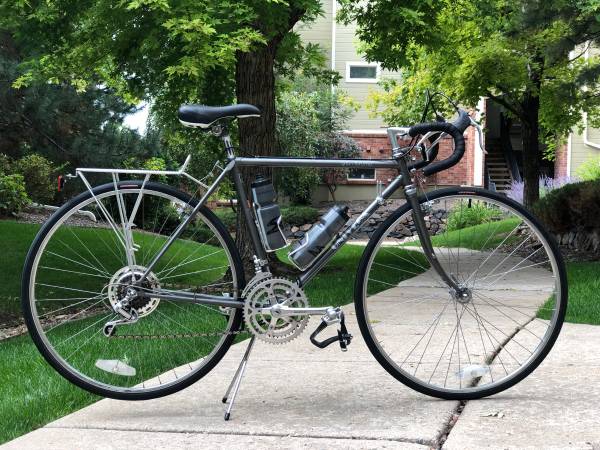 Beautifully restored Univega touring bicycle. Steel frame and forks. The bike has been restored, cleaned and includes new bar tape, brake hoods, new brake cables, brake upper levers and newer tires. There are scratches and use marks on the frame, but in good condition. Bags and water bottles not included. The bicycle has been serviced and tuned up and is ready to enjoy.