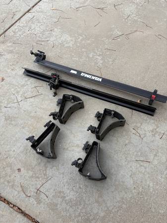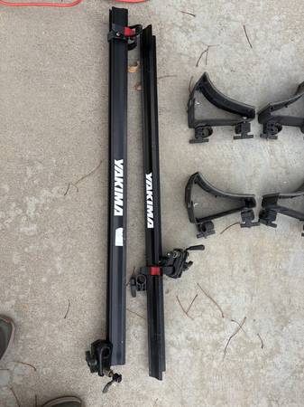 2 nice bike holders and kayak holder - fits Yakima and/or other round bar roof racks. $20 to the two bike racks and $20 for the kayak holder - take both and you get them for $30