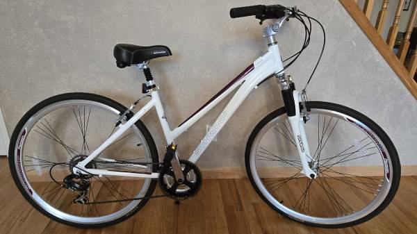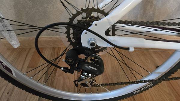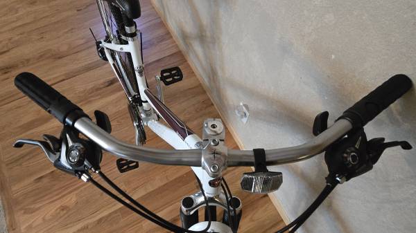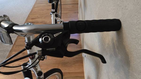 Features trued rims, 3x7 drive train, front and seat post suspension, adjustable gooseneck, 700c tires, beach cruiser like handlebars. New condition, ready to ride. Paypal, cash