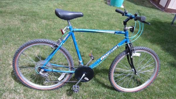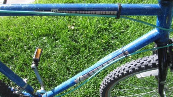 Huffy 18 speed MTN bike. Frame made in the USA. Alloy rims made in the USA. It's fairly light weight for being steel. Rides good, index shifting, shifts good. Looks good.