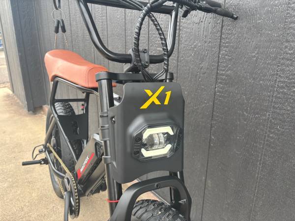 The Macfox X1S is the perfect on and off the streets bike, with 20in fat tires you can take it anywhere. The 500W motor, peaking at 750W, delivers instant acceleration with the grip twist throttle, and the LED front headlight allows you to see incredibly well in the dark. And with the dual battery, get up to 78 miles out of your ride - double the single battery! Come take one for a ride!